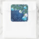 A really pretty white Christmas square sticker featuring white snowflakes falling from a magical blue sky. Green Christmas pine tree branches and white and blue Christmas balls give it a festive look. Perfect Christmas gift for your loved ones