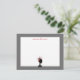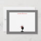 A flat notecard featuring an illustration of a black hat stand wearing a red, grey, and black fascinator at bottom. Personalise with your name in red script at top. Border is grey.