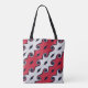Fashion abstract swirling pattern in red, black and silver white colours tote bag.