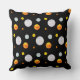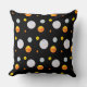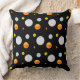Beautiful throw pillow with fashion beautiful polka dots on black background. The beautiful polka dots resemble planets in a universe. Design for adults as well as for students or kids.