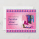 A party invitation for the fashion diva who can work that runway like nobody's business! A rack of clothes and accessories is featured against a pink starry background, while on the reverse the rack has been stripped clean leaving only empty hangars. Available with matching products.