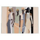 Radiating confidence and timeless allure, Retro Chic captures the bold sophistication of vintage-inspired fashion through a sleek, contemporary lens. Striking figures stand poised in tailored ensembles and elegant skirts, each accessorised with statement sunglasses, hats, and jewellery. The muted palette of blush, cream, and taupe is elevated by varying shades of violet, sage, and coral, creating a refined balance of softness and strength. Clean lines and minimalist shapes highlight the artistry of couture, while the retro styling channels an era of polished glamour. Perfect for fashion lovers, this piece celebrates individuality, poise, and the enduring appeal of classic style reimagined for today.
