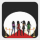 Fashion Girls © Sunny Mars Designs. Cool, cute, modern, trendy, girly custom square stickers with the silhouette of four gorgeous young glamourous female fashion divas or models modelling and posing in their stylish outfits.