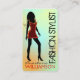© Sunny Mars Designs. Fashion Girl Wearing Red Dress Stylist Business Cards - Cool, cute, modern, trendy, girly custom fashion designer business cards with the silhouette of a gorgeous young glamourous diva or model modelling and posing in her stylish red dress.