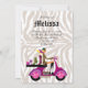 Fashion Party Invitation Scooter Woman Pink Leopard great for a bachelorette party or sweet 16.