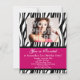 Fashion Pink Zebra Custom Party Invitations, Great for any age or year! Customise this stylish animal invite with your name, photo, age and party info. Super ultra hot pink with black and white zebra stripes and feminine script writing. Use it for your 21st birthday, or any year!