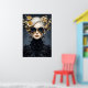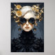 “Fashion” is an exquisite piece of art that embodies the essence of style and elegance. The artwork features a woman in a stunning black dress, adorned with gold accents that add a touch of sophistication. Set against a deep blue background adorned with gold flowers and leaves, the artwork exudes an air of mystery and allure. This piece is a testament to the timeless beauty of fashion and is sure to be a conversation starter in any space.