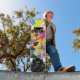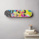 Retro style 80s graphic with simple shapes with bold colors onto skateboards.