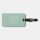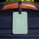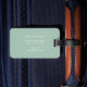 Travel in style with this chic luggage tag featuring a fashionable woman exploring iconic world cities. The illustration includes London, Paris, Rome, and New York with stylish outfits, cafés, and travel scenes on a soft mint background. Perfect for fashion lovers, frequent flyers, and stylish travelers who want their suitcase to stand out with a feminine travel accessory. Original artwork by Caroline Bonne Müller.
