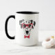 This design features a hand drawn portrait of Dalmatian dressed in red glasses and heart design bow tie.