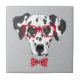 This design features a hand drawn portrait of Dalmatian dressed in red glasses and heart design bow tie.