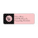 Stylish return address labels done in pale pink, with black custom text. A black with small pink polka dot pattern decorates the left side of the label, with a pink round disc and a black one letter monogram. Personalise all the text on this fashionable address label, great for personal or business use.