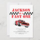 Fast One Modern Red Race Car Boy 1st Birthday Invitation