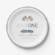 Fast ONE Navy Blue Retro Race Car Paper Plates