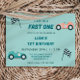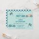 Start your engine and celebrate your little one's first birthday with this race car themed party. This invitation feature cute vintage racing cars. Matching party decorations in our store.