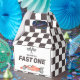 Zoom, zoom! Celebrate your one year old speed racer's car themed birthday party with these adorable modern race car favour boxes. Perfect for your little one first birthday celebrations!