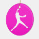 Ornament with a silhouette of a softball pitcher in action. Available in different colours and on other products at my store.