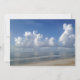 Badge masks part of the photo, beach photo on front and back, big fat puffy clouds on a rich blue sky over the ocean and warm sand, beach photo wedding design, modern bold typography, calligraphy type, unique wedding and event design, distinctive wedding fonts, casual wedding celebration, contemporary wedding style, modern wedding design, simple wedding design, ocean-side wedding, coastal wedding, getting married on the beach, beach marriage ceremony, replace this beach picture with your favourite shot of your favourite beach, save the date for beach wedding plans