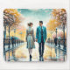 Pretty ai watercolor art. A man and woman passing each other in the London street brushing hands as they pass. A romantic chance meet.