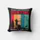 Father and Daughter Deer Hunting throw pillow features a black silhouette of a father and daughter bow and rifle deer hunting with text that reads Father and Daughter Hunting Buddies For Life.