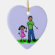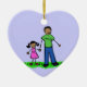 Father and daughter hold hands. The dad's shirt read "daddy" and the little girl's dress reads "me". The family has black hair and tan skin. The image comes in multiple colour versions. There is also a no colour drawing version too. Personalise the daddy and daughter ornament with family names or a personal message for a special father or daddy button pendant gift! You can make custom family ornaments for a special Father's Day gift, new Daddy, Family Reunion or other customised family art gifts!