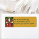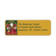 A Christmas return address label featuring an edwardian illustration of Father Christmas decked out in his red suit with white fur cuffs on the left margin.