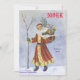 Take a close look at the bag on his back and you will see a doll with long hair, a clown, a horse, an elephant, a teddy bear, blue and yellow ball and a wrapped gift. It is also interesting to see him will a small spruce tree with red decorations on the end of each branch. A thoughtful present for a family unable to obtain a tree of their own. And is that a sprig of holly also?