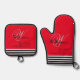 Father Of Bride Christmas Gift Monogram Chic Red Oven Mitt & Pot Holder Set