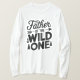 This image showcases a bold, adventure-themed typography design featuring the phrase "Father of the Wild One." Decorated with arrows, paw prints, and pine trees, it perfectly captures a rugged, outdoorsy vibe. Ideal for fathers celebrating their adventurous toddler's first birthday, this design is great for t-shirts, party decorations, and gifts. A perfect choice for woodland or wild one birthday party themes!
