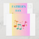 : A digital illustration for a Father’s Day card. It features the text “Father’s Day” in a blue gradient with musical notes and stars scattered around it.