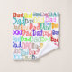 This wash cloth has the word “Dad” repeated in different fonts and different colours across the whole design. Fun and bright.