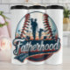 This unique graphic, shaped like a baseball, beautifully illustrates fatherhood. A silhouette of a dad, carrying one young girl and holding another's hand, walks across a grassy field with stadium lights and empty chairs in the background. The word "Fatherhood" is elegantly scripted across the bottom, framed by red and blue ribbons, celebrating precious moments at the ballpark.