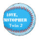 Happy Father's Day. Personalise with baby boy's name and current year. Twin 2 is written in blue text below name (insert Twin Number and add to shopping cart individually). One-of-a-kind two-toned blue baseball keepsake gift idea for the father or first time father of the baby boy twins. Leave baby feet image, or click to upload your own photo. You'll Always be the Best Daddy Ever is written in centre of ball in blue text with silver scrolls on the sides with area. XO Kiss Hug is in red text between photo image and child's name. NOTE: When uploading your photo if the XO does not appear, simply click Customise and on right side drag photo image to bottom of list. Original Photography and Graphic Design Copyright © 2010, 2018 TamiraZDesigns. All rights reserved. Visit my store for more unique items at: www.zazzle.com/tamirazdesigns*