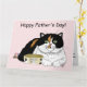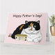A cute Calico cat sitting beside their food bowl wishing their Cat Dad a happy Father's Day.