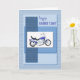 A great card for Father's Day. A blue motor cycle on an abstract blue background. The front says "Happy father's day". A great card for someone who is a motor bike enthusiast. The textures on the front of this card are printed.