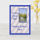 This design is an image of a sailboat on a striped nautical background with royal blue borders. Perfect for a father who loves sailing.