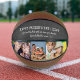 Personalised Happy Father's Day basketball with 3 of your favourite photos. The wording is fully editable so you can change the occasion if you wish. It currently reads "Happy father's day [year] You're the Best and we love you loads [name(s)] xoxo". The design has a lightly distressed chalkboard look with white typewriter style typography. The photos are displayed as 2x square / instagram pictures and 1x portrait format.