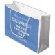Father's Day Custom Modern Cute Grandpa Gift Bag. Beautiful blue background with decorative fancy white script lettering. Click personalise this template to customise it quickly and easily. Matching gift bag, fleece blanket, paper plate, paper napkins, wine label, beer label, stickers and key ring in my store under Grandfather or in Grandfather Collection. 30 Day Money Back Guarantee. Ships Worldwide fast.