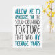 Allow me to apologise for the soul-crushing torture that was my teenage years