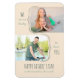 Modern Father's Day magnet, personalised with 2 of your favourite photos, which are shaped and framed with curly brackets. The design reads "WE are so lucky to have YOU .. HAPPY FATHER'S DAY to the best dad in the world" in skinny font typography and handwritten script. The magnet is designed for you to add a picture of the family or children (top photo) and, a picture of dad (bottom photo).