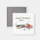 A father’s day magnet with Chapel Smith, a cute redhead girl with two red ponytails laying on the ground unconscious having been knocked out by her dad’s baseball pitch with her old-fashioned blue and white baseball cap, baseball bat, and the baseball on the ground, her glasses crooked on her face with stars around her head. There is also the saying “Happy Father’s Day.” A perfect gift for any dad or granddad!