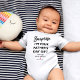 Personalised funny father's day baby bodysuit featuring the cute saying "surprise i'm your father's day gift, mum says you're welcome", a red heart, and the babys name.