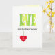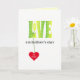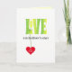 Send LOVE on Father's day. This bright modern design has LOVE in yellow-green colored capital letters with a pattern of white stars, and there is a red heart hanging from the L.