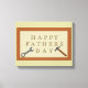 This awesome canvas print features a digital art image of a wooden desk with a group of wooden letters on it that spell out the words Happy Fathers Day. Each of the letters has a series of nails hammered into it. There is also a spanner on one side of the sign and a hammer on the other side. A great design for any handyman Dad who loves to make things.