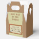 This awesome favour box features a digital art image of a wooden desk with a group of wooden letters on it that spell out the words Happy Fathers Day. Each of the letters has a series of nails hammered into it. There is also a spanner on one side of the sign and a hammer on the other side. A great design for any handyman Dad who loves to make things. There is custom text so you can include a message.