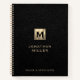 Faux Black Leather Print Gold Initial Logo Notebook