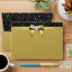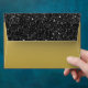 Elegant custom black and gold envelopes with a beautiful glittery black printed image sequins jewels, gems, glitter pattern, cute, sophisticated shiny printed golden bow and ribbon and pretty digital diamond bling jewel on a gold gradient background. Please note: These are flat printed graphics - not real bow, diamond or sequins. These classy glamourous envelopes are decorated inside and out. Beautiful, stylish, chic, trendy, modern, glitz and glamour envelopes. If you need assistance customising your product please contact me through my store. I will be happy to help.