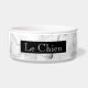 An elegant dish for the dog of the house. Black white and grey marble is the background pattern. A black colour block is set with the text "Le Chien" - the French word for dog using trendy font. Your dog will enjoy seeing its dish having an international flair!