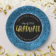 Faux Blue Glitter Graduate Graduation Paper Plate