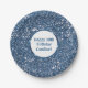 Faux Blue Glitter Texture Look With Custom Text Paper Plate